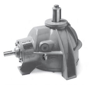 - Two-stage (spiral bevel/helical) gear reduction for efficient power transmission